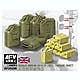 Plastic and photo-etched metal parts to build 18 5-gallon fuel cans and 18 2-gallon fuel cans.