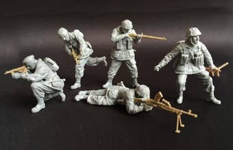 These new figures from Bronco Models are ready for combat in your next WWII diorama! This kit includes parts to make five figures. Decals are also included.