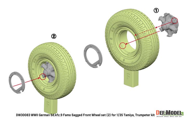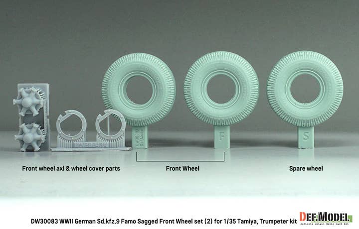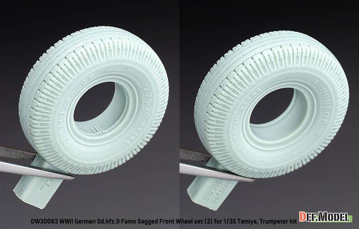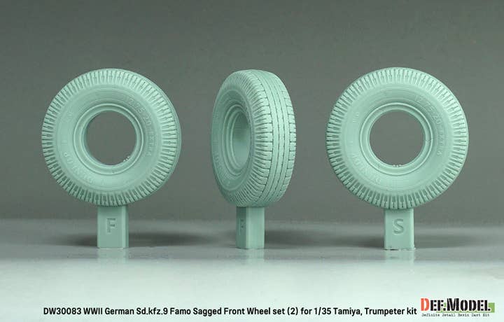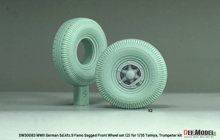 1/35 WWII German Sd.kfz.9 Famo Sagged Front Wheel set (2) - Deutsch Dunlop (for Tamiya, Trumpeter)