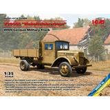 ICM's 1/35-scale model kit of the World War II German truck V3000S with a simplified Einheitsfahrerhaus cab, seen in the second half of WWII, can be built as a standard or camouflage version; it can be built with fender and hood variations as well. Decals are included for tactical insignia of grenadier, artillery and anti-aircraft units. Place your order today!