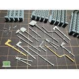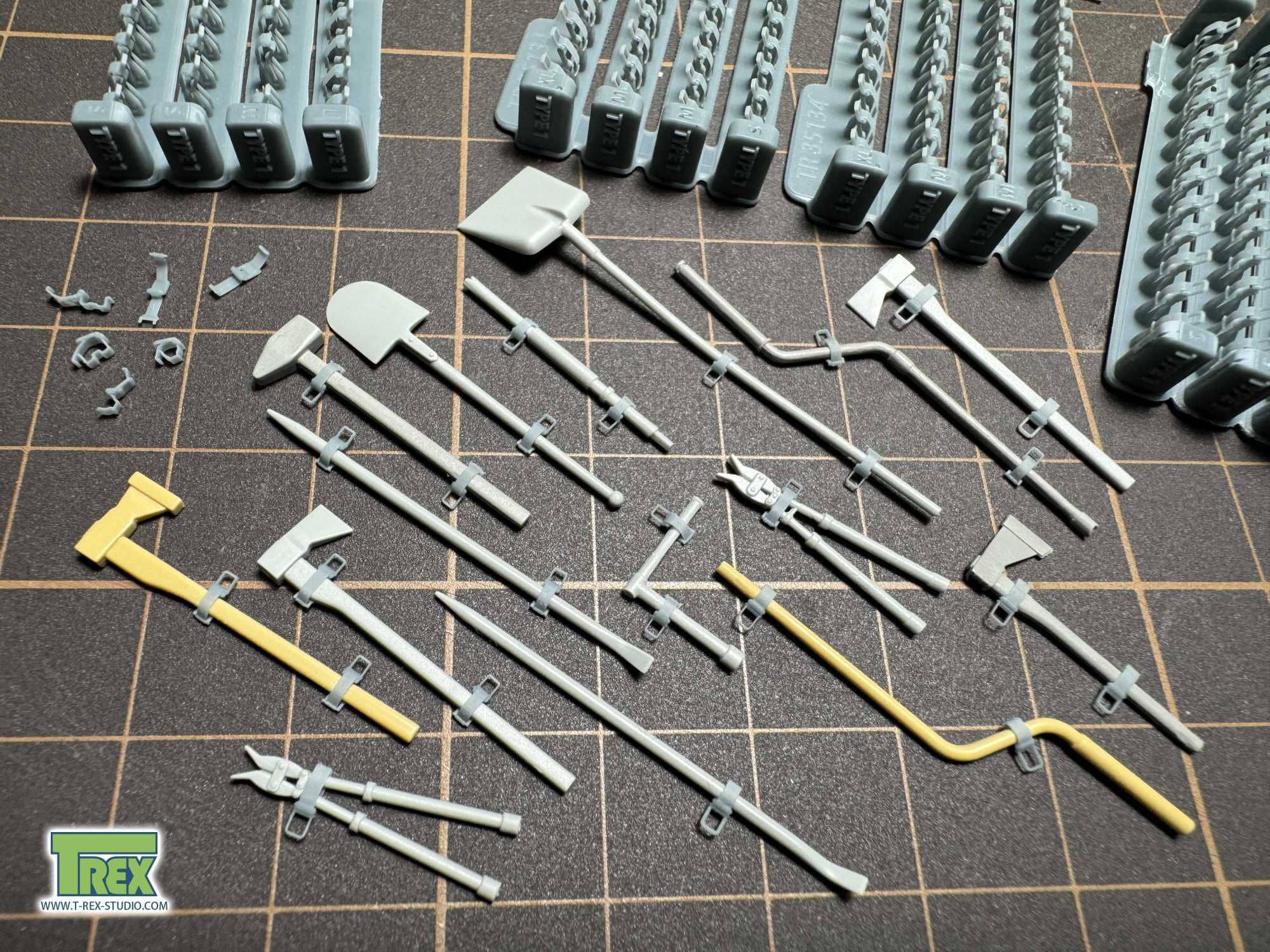 The clamps are molded in one piece with an open hinge, allowing you to insert tools or other items and glue the hinge to create highly realistic external equipment. Four sizes are available to accommodate various tools.