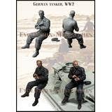 This is a figure vividly depicting a German tank crew member during World War II. The tank crew member, belonging to the Waffen-SS, has removed his field cap and placed it beside him. He is seated and attempting to pull out a cigarette from a box while looking to the left. The figure is excellently crafted with natural posing and intricate details, such as the tank uniform and facial expression.