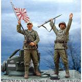 The Japanese Army, which advanced to Southeast Asia in the early days of the Pacific War, fought ferociously and captured the British and American troops stationed there. This set of two unpainted, unassembled resin figures brings us two Japanese Army infantrymen celebrating their victory by waving the Rising Sun flag! The figures are packed with accurate modeling and wondeful details. Order yours today!