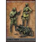 Each figure is intricately detailed, including their military uniforms, equipment, and scattered gloves and magazines.