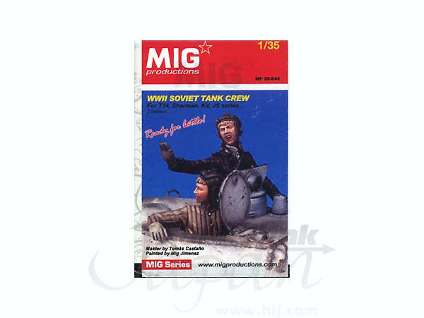 MIG Productions is respected around the world for their superlative military modeling supplies and accessories. In addition to their huge selection of pigments and finishing products, they also offer very fine resin-cast figures. This set includes all the parts necessary to build the two figures as illustrated below (tank not included!).