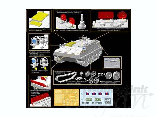 Bronco's highly detailed kit of the Russian-built YW-531C APC depicts a vehicle as used by Iraq during the Gulf War of 1991. Includes photo-etched metal detail parts.