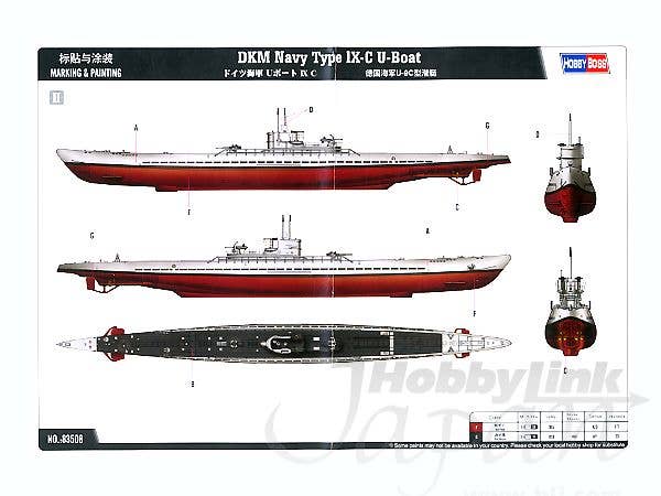 A very sharp little injection plastic assembly model kit of the WWII German Type IX- C U-Boat. Can be built as either a waterline or full-hull model. Includes markings for two U-boats and photo-etched metal detail parts.
