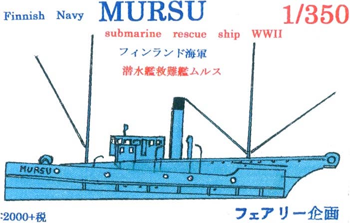 Reknowned for their very small, very fine resin kits for advanced modelers, Fairy Kikaku of Japan now brings us this exquisite 1/350-scale resin kit of the Finnish Navy submarine rescue ship Mursu!