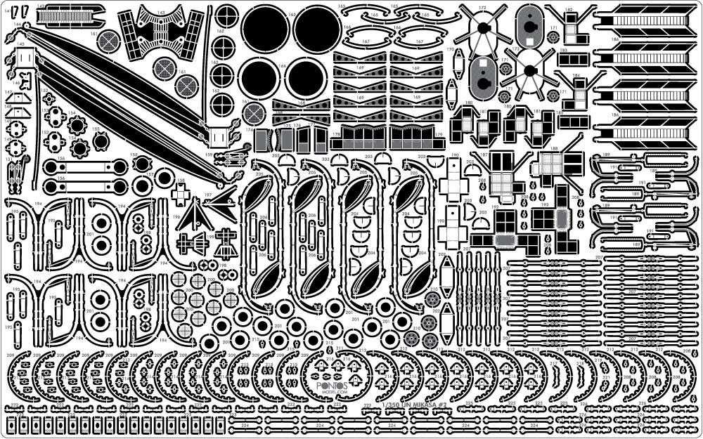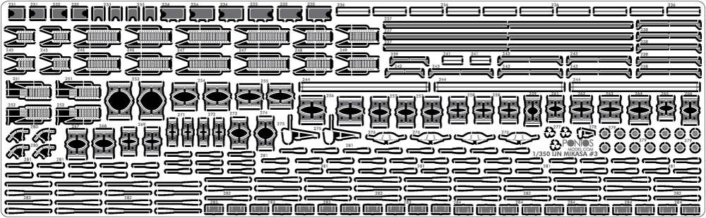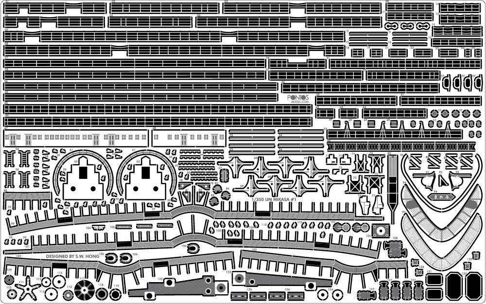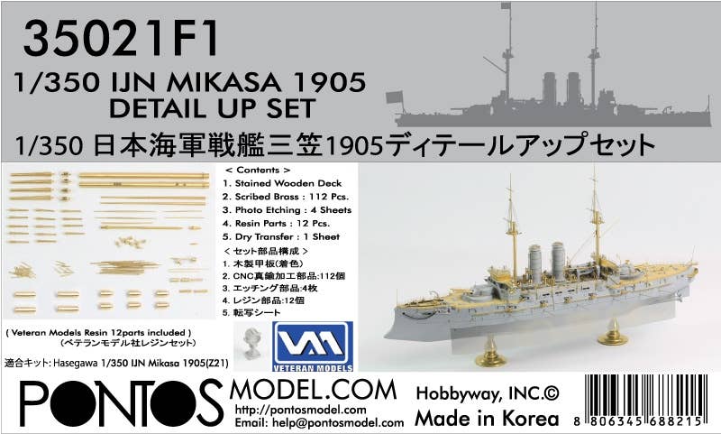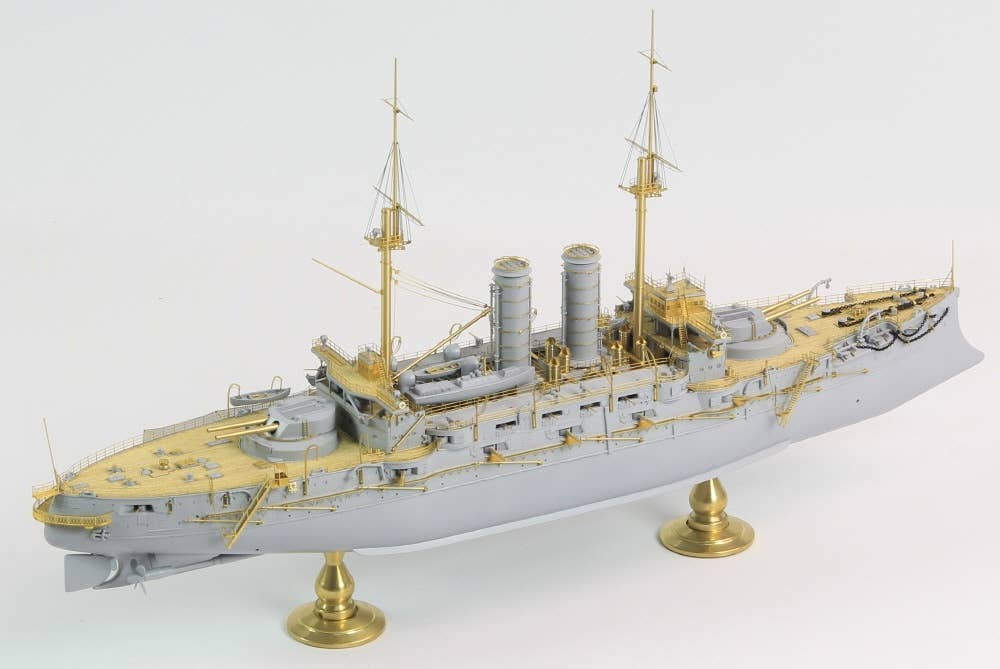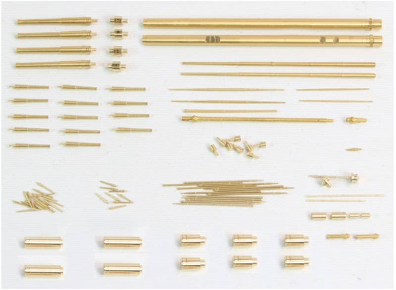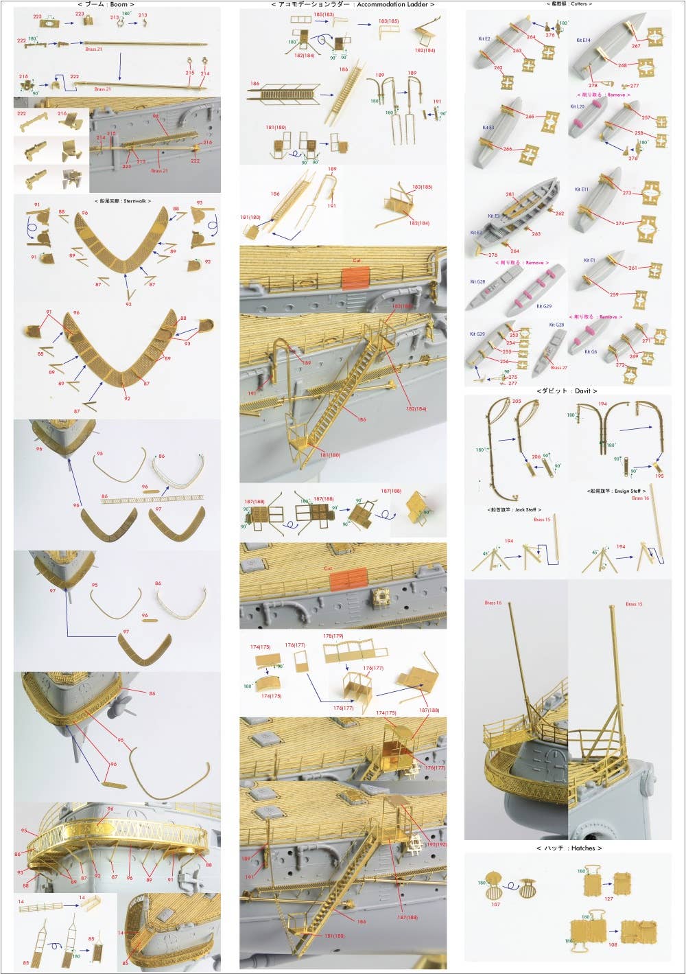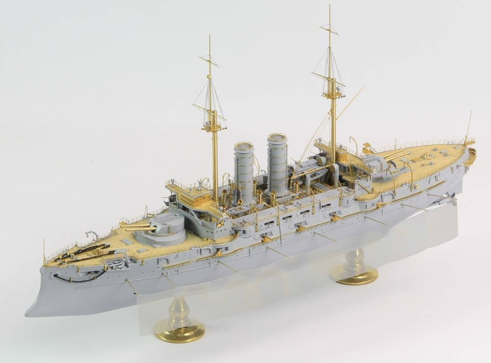 Includes stained wooden deck, scribed brass parts, photo-etched parts, resin parts, dry-transfer decals, and other items!