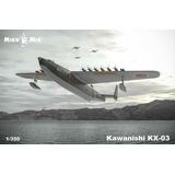 This kit from Mikro Mir is an entirely new mold! The KX-03 is a super-large flying boat researched by Kawanishi Aircraft at the request of the Imperial Japanese Navy (although it was never manufactured). At the beginning of 1943, the Navy requested Kawanishi Aircraft to study the technical feasibility of a 500-foot-long flying boat; engineer Takeuchi Tamenobu was the team leader, and engineer Shizuo Kikuhara was the general cooperator. They designed a 500-foot main wing, calculated the weight of the main wing structure, designed a promising hull, and confirmed data such as cruising power through wind tunnel experiments and aquarium experiments. The total width of the KX-03 was 180m, and it was possible to transport an entire battalion of troops. The main wing was partly made of wood, and the engine is mounted on the upper surface of the main wing using a pylon. The main power was supplied by an Ne201 turboprop engine made by Mitsubishi Heavy Industries. The Ne330 turbojet engine was used as auxiliary power.