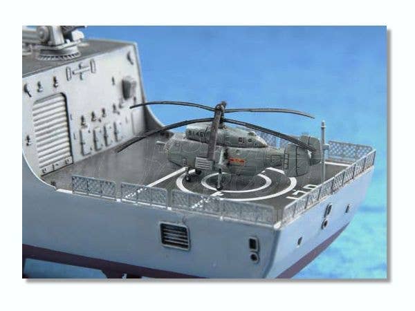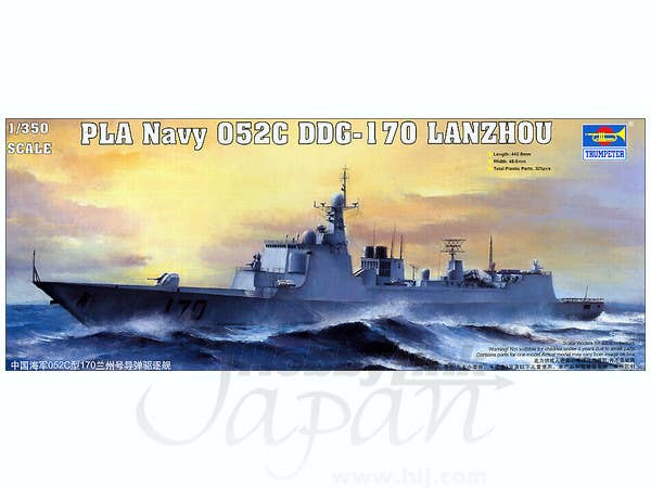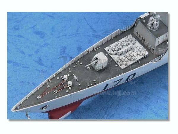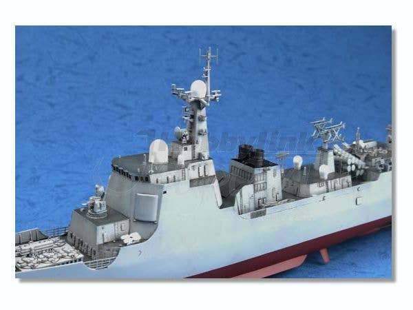 The Chinese Navy DDG-170 Lanzhou was the first Chinese warship fitted with phased array panels and vertical launch systems. Trumpeter's kit of the Lanzhou features photo-etched metal detail parts, a Ka-27 helicopter, and a display stand. A full-hull model, measuring 442.8mm long when complete. Decals are provided for DDG-170 and DDG-171.