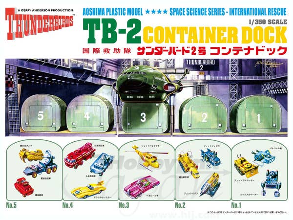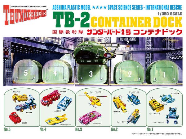 A very cool model, with parts to build all the vehicles and diorama dock you see here! Molded in multiple colors...some dock parts are even pre-painted! Includes decals.