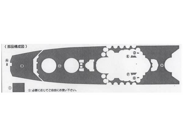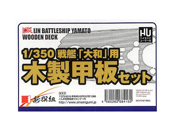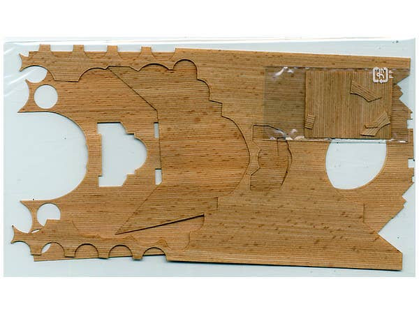 This is a real wooden deck, designed as an exact replica of the deck on the real IJN battleship Yamato! It's pre-cut and ready for use. Note, though, that because it matches the real Yamato's deck, it will need some alteration if used on a kit that differs slightly from the real Yamato; for instance, the deck of Tamiya's 1/350 kit is slightly different from that of the real thing, so this wooden deck will need some alteration if used with that kit.