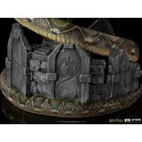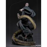 Iron Studios presents its impressive display statue of Voldemort and Nagini in their Legacy Replica lineup! Barefoot and climbing a base formed by the remnants of concrete and stones from Hogwarts Castle, Voldemort's monstrous pale face exudes all the intensity of his malice, spite and fury as he wields his wand in his right hand, ready to unleash one more destructive spell against anyone who opposes his will. His slender, cadaverous body is covered by a black toga, and is surrounded and protected by Nagini, a huge snake that, far more than a pet of the villain, guards part of his dark soul, like the so-called Horcrux, which is a magical way to preserve a piece of his evil spirit.