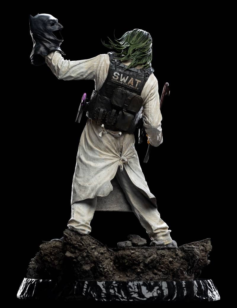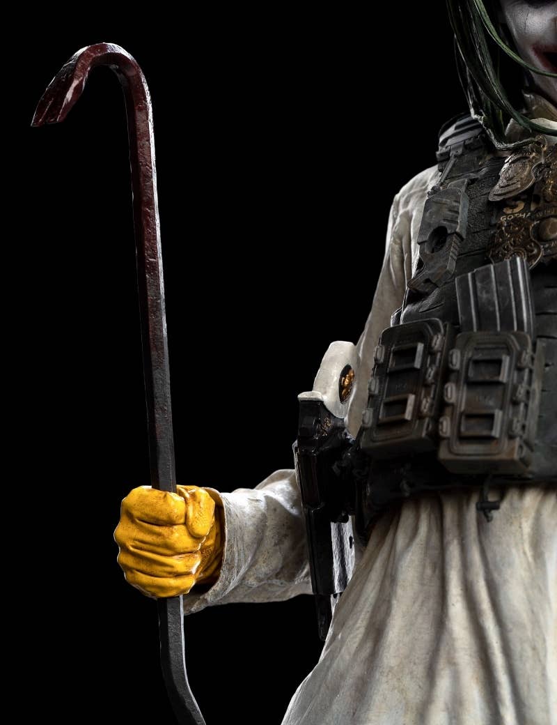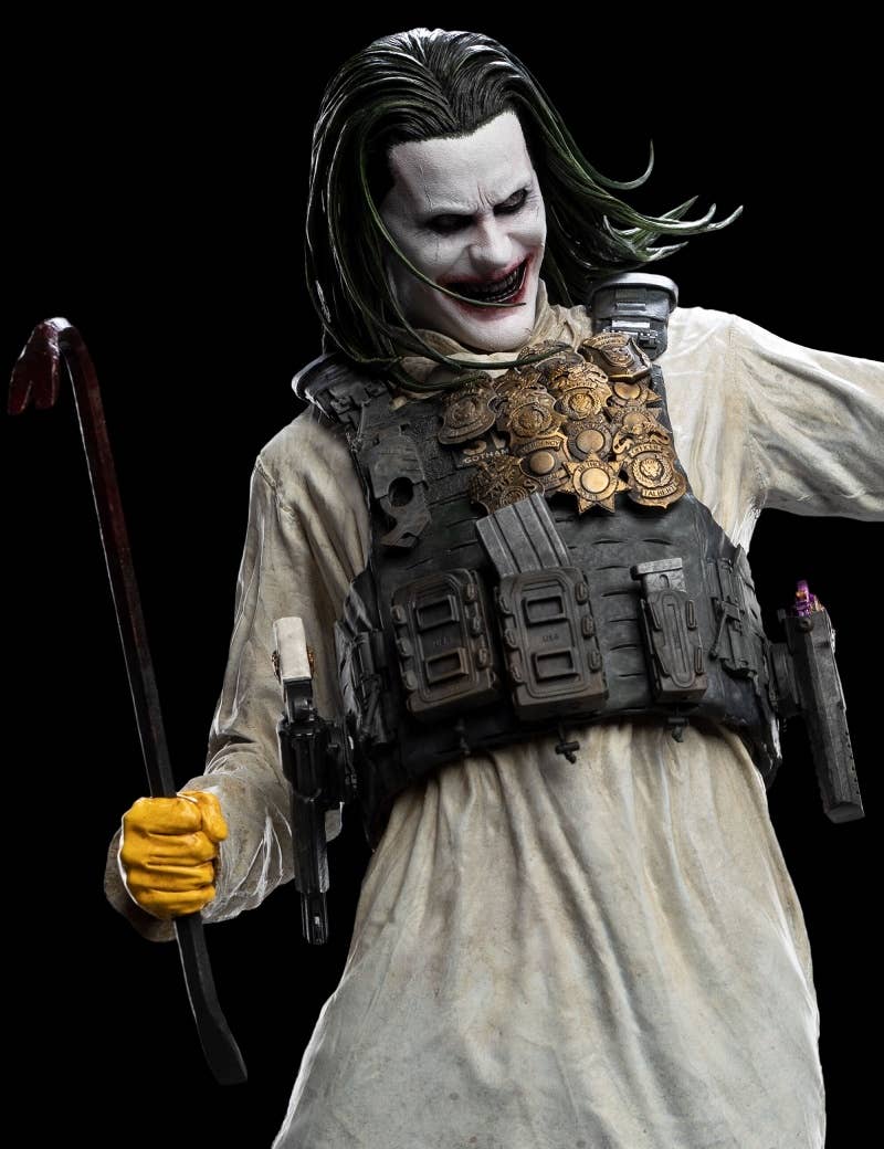 As seen in 2021's "Zack Snyder's Justice League," Jared Leto as the Joker stands triumphant with his crowbar weapon! Weta Workshop brings this pivotal moment in the film to life with this impressively sized 1/4-scale statue. Interchangeable parts allow the Joker to be displayed with a joker card in one hand, or holding Batman's cowl. Every detail of this figure is lavished with attention and sculpted with care, down to the folds and wrinkles in the Joker's clothing, the detailing on the police badges he wears, and even the rubble-strewn base. Order it for your own collection now!