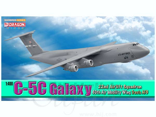 A completed 1/400 scale die-cast desktop model of the C-5C Galaxy in the markings of the 60th Air Mobility Wing. Includes options for extended and retracted landing gear as well as an in-flight display stand. Please note that the photos shown are of a prototype; the production version may vary.