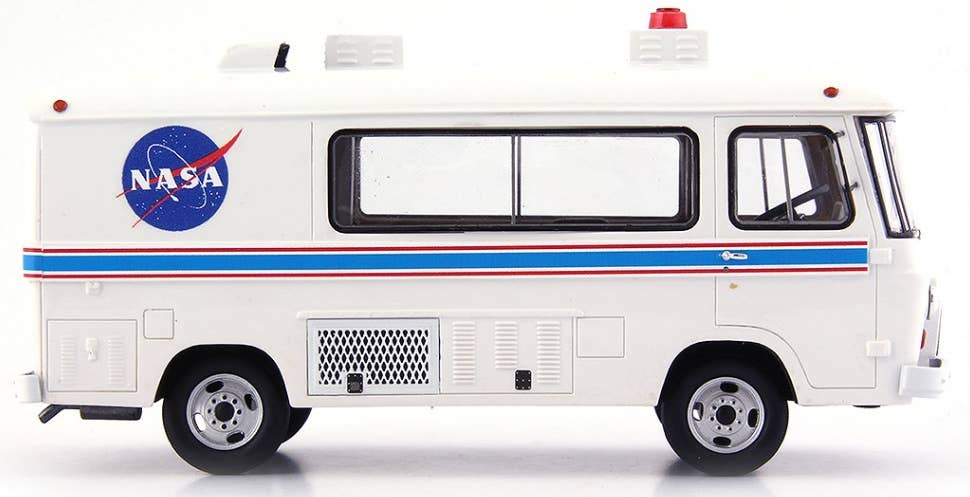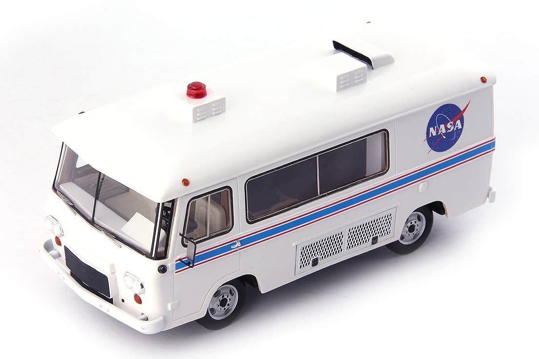 Limited to 333 pieces! This Clark Cortez van was used by NASA to transport astronauts to the launch pad; this completed resin display model depicts the van as it was in 1969, taking the Apollo 11 astronauts to the Saturn V rocket in preparation for the first manned mission to the moon on July 16, 1969! Although little is known about this van, we know that it was not a commercial model; it had to be modified to have enough room inside it for astronauts wearing their spacesuits. It was also used to transport NASA employees to various points on the vast Kennedy Space Center grounds; it was retired in the early 1980s with the advent of the space shuttle program. The bus is now open to the public at Kennedy Space Center -- and now you can add it to your own collection!