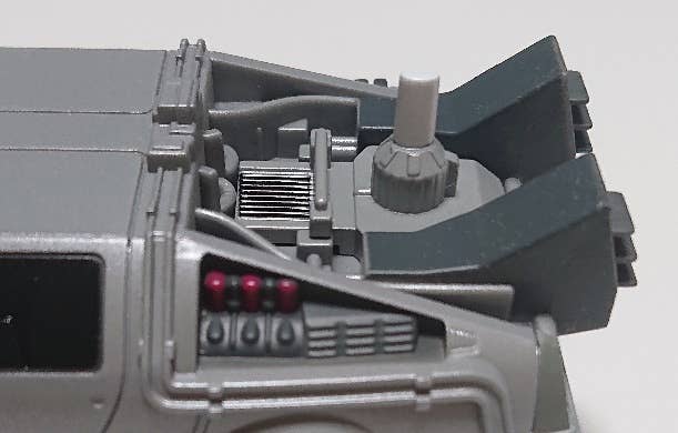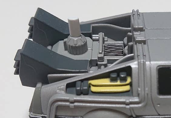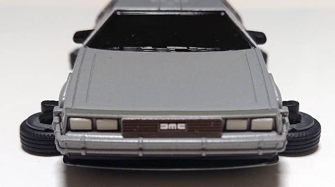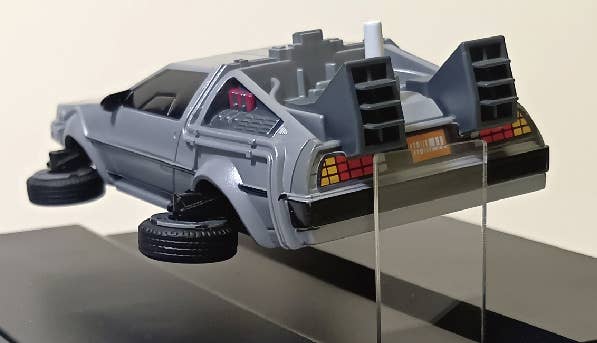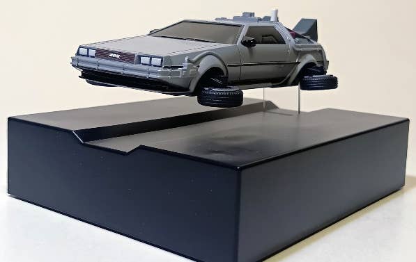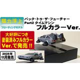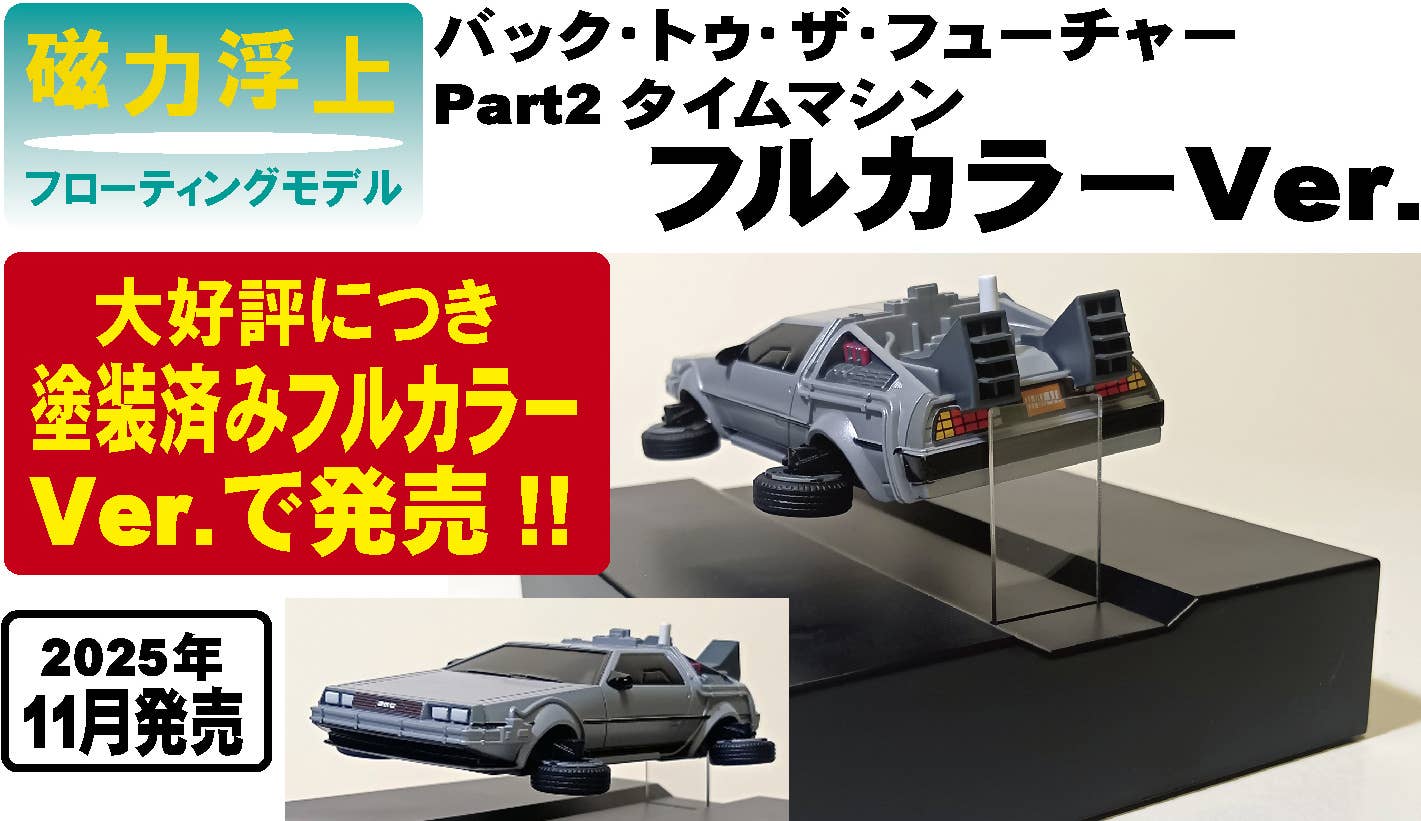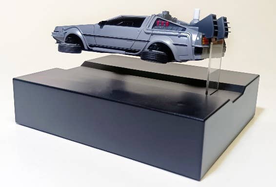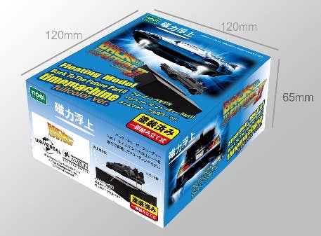 Noel Corporation's fantastic display model of the iconic Time Machine from "Back to the Future Part 2" is back -- and in response to many customer requests, it's now available in full color! A new paint mask mold was created for the body, nose, tail, and sides, and was made with permission and cooperation from Universal Entertainment. Best of all, this 1/43-scale Time Machine really floats thanks to the magic of powerful magnets -- no batteries required! The Time Machine will move back and forth and side-to-side due to the unstable repulsive force, but a stable posture is maintained by an exquisite balance of magnetic force and support plates. The Time Machine is pre-painted and ready to assemble (vehicle is partly assembled); you can choose between standard ground-riding position with its tires in place, or a levitating position with the arms extended (the wheels do not rotate). It's a truly unique addition to your collection -- place your order today!