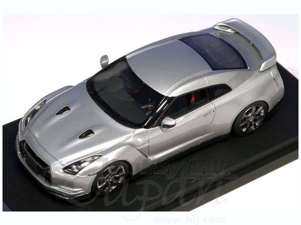 This excellent die-cast model of the GT-R from HPI Racing features amazing detail and a flawless "Ultimate Metal Silver" finish. The car comes mounted on a black plastic base with a beautiful metallic "GT-R" plaque. Covered with a crystal-clear plastic case to help keep it free of dust and fingerprints.