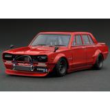 Here's a completed display model of a custom Nissan Skyline 2000 GT-R(PGC10) in red, with dish type 14-inch pull tires and low-down specification. Features rear spoiler, front lip spoiler, oil cooler, racing over fender, roll bar, and recaro seat. You can enjoy a higher level of quality from interior to exterior. Order yours today!