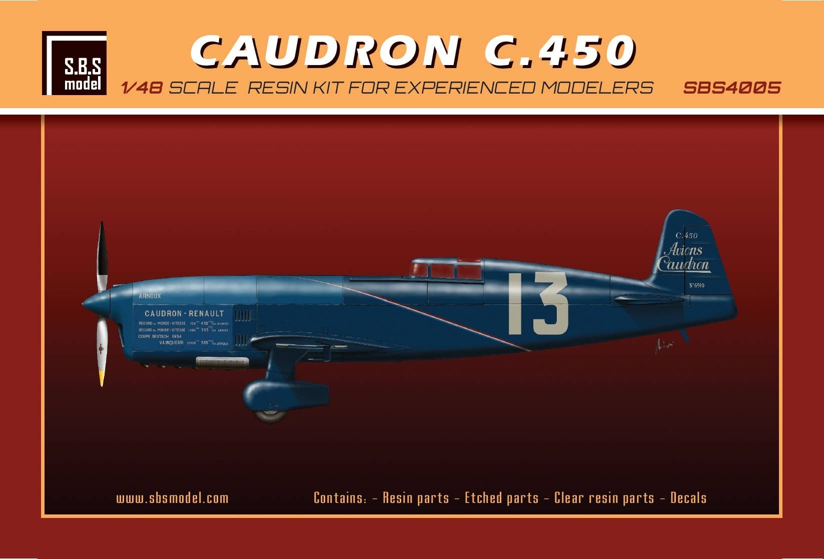 This resin kit includes photo-etched parts, paint mask seals, transparent film for the instrument panel, and decals for one version. Order yours today!