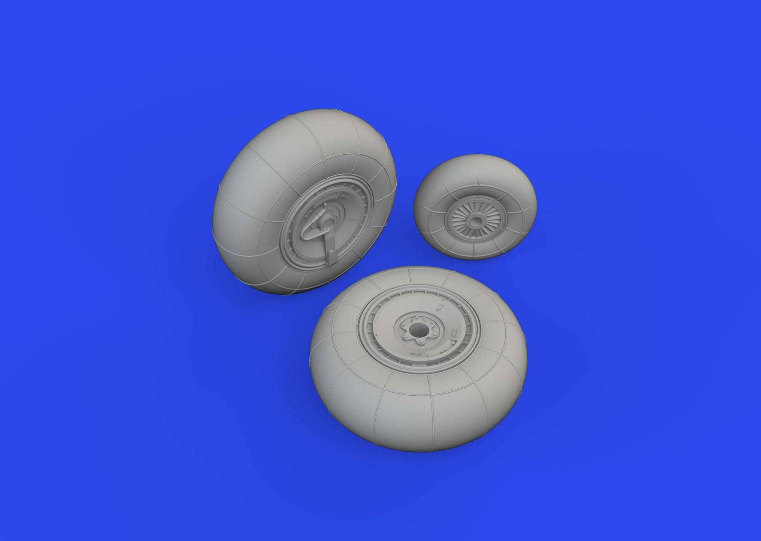 For the Do 335A model kit by Tamiya, this set of pieces will help you create additional detail. These resin pieces are a set of wheels for the aircraft.