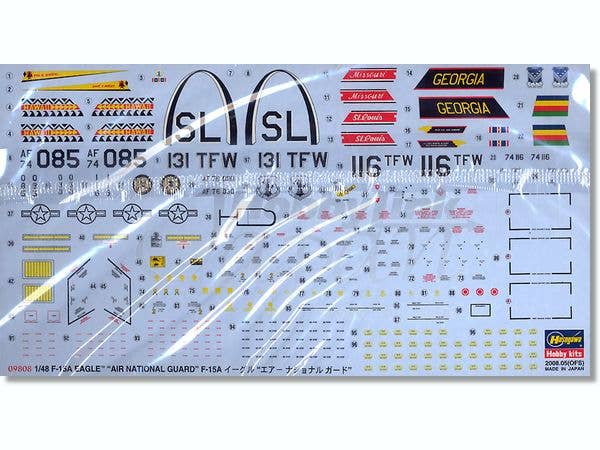 Limited reissue of the Hasegawa 1/48 F-15A kit with decals to mark it as any of three Air National Guard Eagles: Hawaii Air National Guard, Missouri Air National Guard, or Georgia Air National Guard. "Aloha, show me them dawgs!" See box art for marking details.