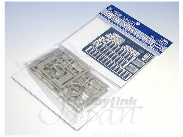 A very nice detail set for 1/48 Hasegawa F-15s. Includes two complete engine nozzles with photo-etched actuating rods and optional photoetched "turkey feathers," photo-etched canopy details, HUD and belt buckles.
