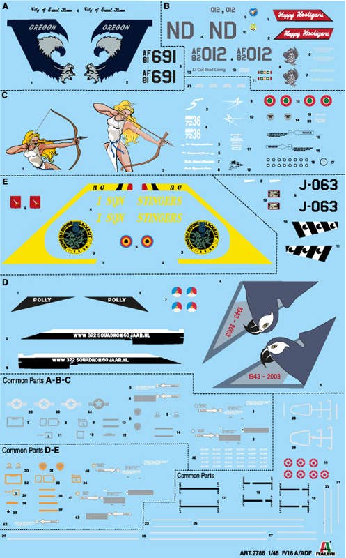 This 1/48-scale model kit from Italeri recreates the F-16A! This kit allows you to choose between the ADF and MU version of the F-16A. The cockpit and landing gear are modeled in high detail; missiles and other parts are included, as are decals for five versions. Order yours today!