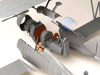 This "pro set" kit includes all the resin and photo-etched parts you see here to build the F2F biplane fighter.