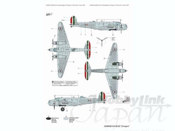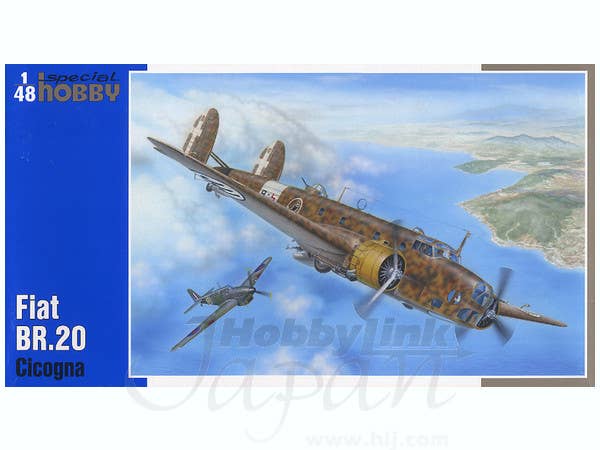 Limited reissue of the Special Hobby 1/48 Fiat BR.20 Cicogna kit with markings for four Italian aircraft. Includes resin and photoetched parts. For marking details please see box image above.