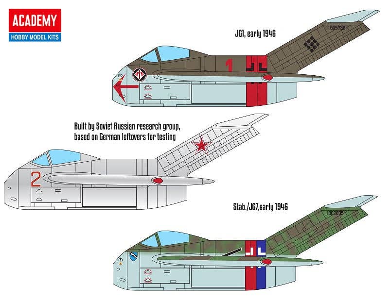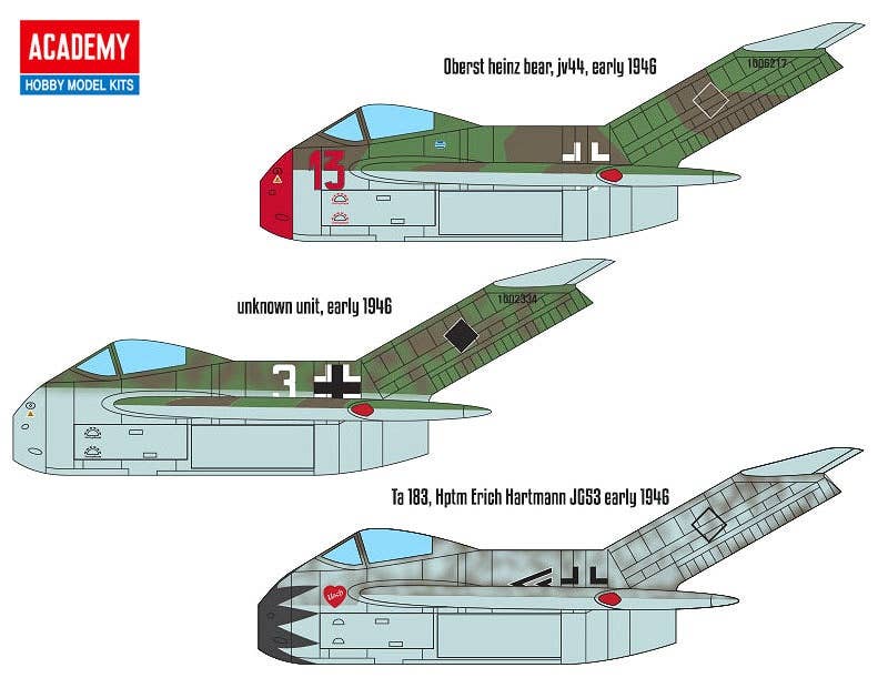 Academy brings us their 1/48 Focke-Wulf Ta 183 Huckebein kit. The Focke-Wulf Ta 183 Huckebein appeared at the end of World War II, and was released too late to play an active role in the war. This precisely-modeled kit includes decals by Cartograf for 6 versions, plus a canopy masking seal and photo-etched parts. Order yours today!
