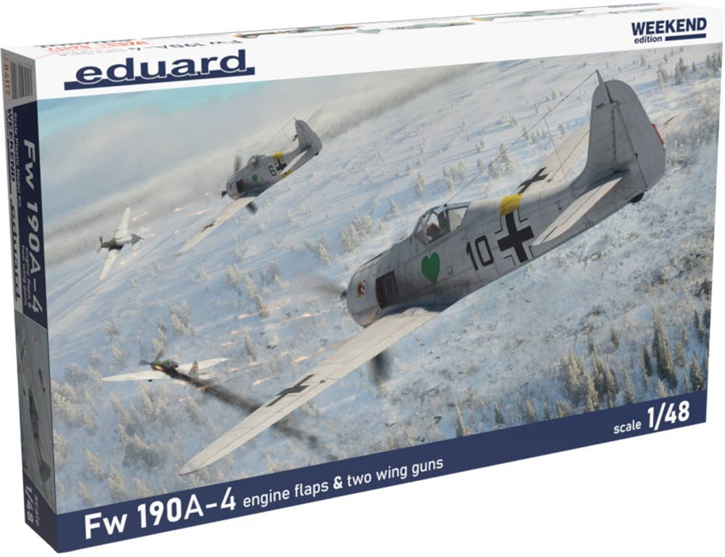 This "Weekend Edition" model kit of the Fw 190A-4 from Eduard comes with engine flaps and two-gun wings, and includes decals for four versions. Order yours today!