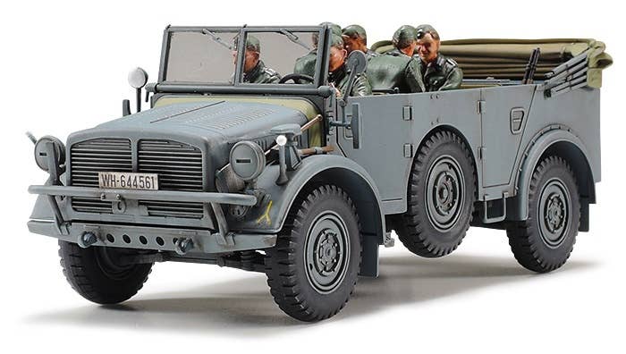 Tamiya has released the German Horch Type 1a into their 48th scale Military Miniature Series. Finely molded in a dark grey plastic with crisp details. Kit includes six figures and two marking options. The marking options are: 1st Panzer Division, Russia, 1941-1942 or Hermann Göring Division, Southern France, Late 1942.