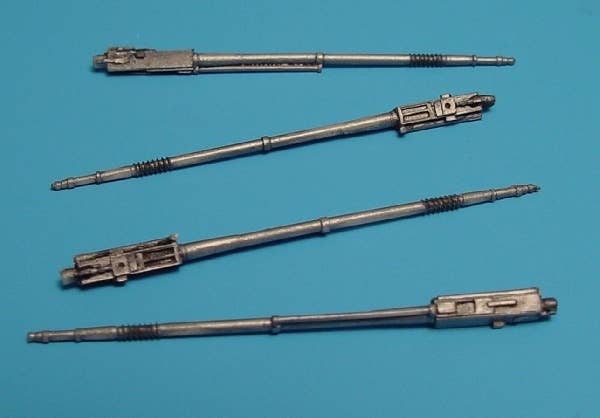A highly detailed 1/48 scale resin model of Hispano 20mm Cannons (unpainted), as shown in the photos and described in the title. (Paint not included)
