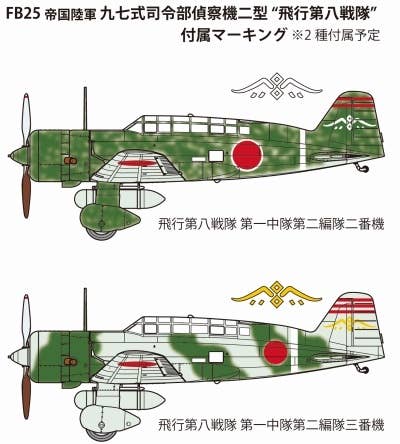 The Ki-15-II (Type 97 Command Reconnaissance Plane Model II) improved its speed by the Zuisei Engine, started production from September 1939. The 8th Flight Group, primarily equipped with light bombers, starting flying Ki-15-IIs from 1941. This model kit features their distinctive tail marking. Order yours today!