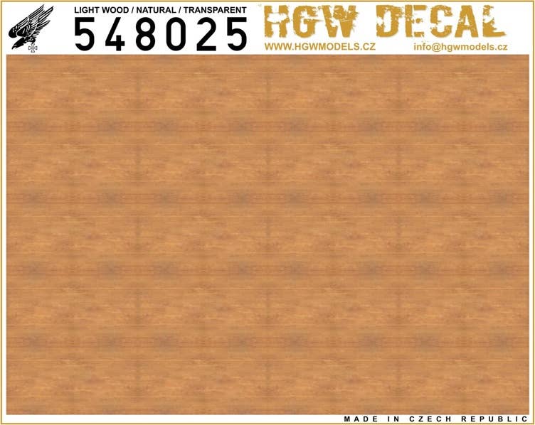 A sheet of transparent decals to add a natural woodgrain finish to a plastic model kit. Sheet measures about 17.25x12.25cm.