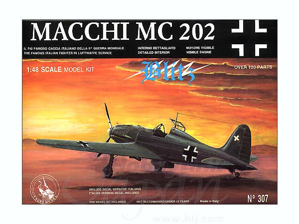Reissue of the Tauro Model 1/48 scale MC 202 kit with decals to mark it as a either an Italian or a Luftwaffe aircraft. Lots of detail here, including a complete engine assembly. See box photo or art for marking details.
