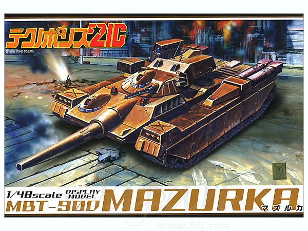 Here's a very cool, very big SF tank! From "Techno Police 21," it's the MBT-90D Mazurka! Featuring sharp exterior detail, a fully detailed interior, flexible belt-style tracks, and two figures (one of character Kaoru Kosaka and robot sidekick Blader), this kit is packed with goodness.