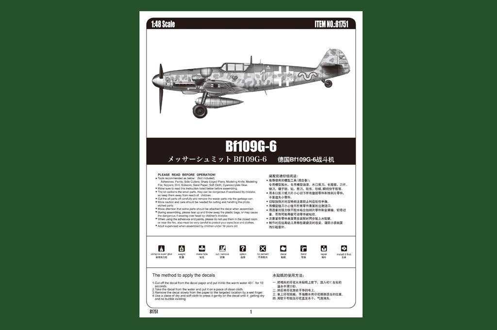 The Messerschmitt Bf-109G, produced up to the end of WWII, was the most mass-produced model of the Bf-109. Some pilots of this aircraft remarked that the increase in speed achieved by the installation of a high-power engine (DB-605) resulted in a machine which was more difficult to control. The Bf-109G began manufacturing in the summer of 1942. The basic modifications were of G-1 and G-2 the engine DB-605A, one 20mm cannon, and two 7,62mm machine guns; of G-3 and G-4 the modified radio equipment, and of G-5 and G-6 the high-power cannon armament.
