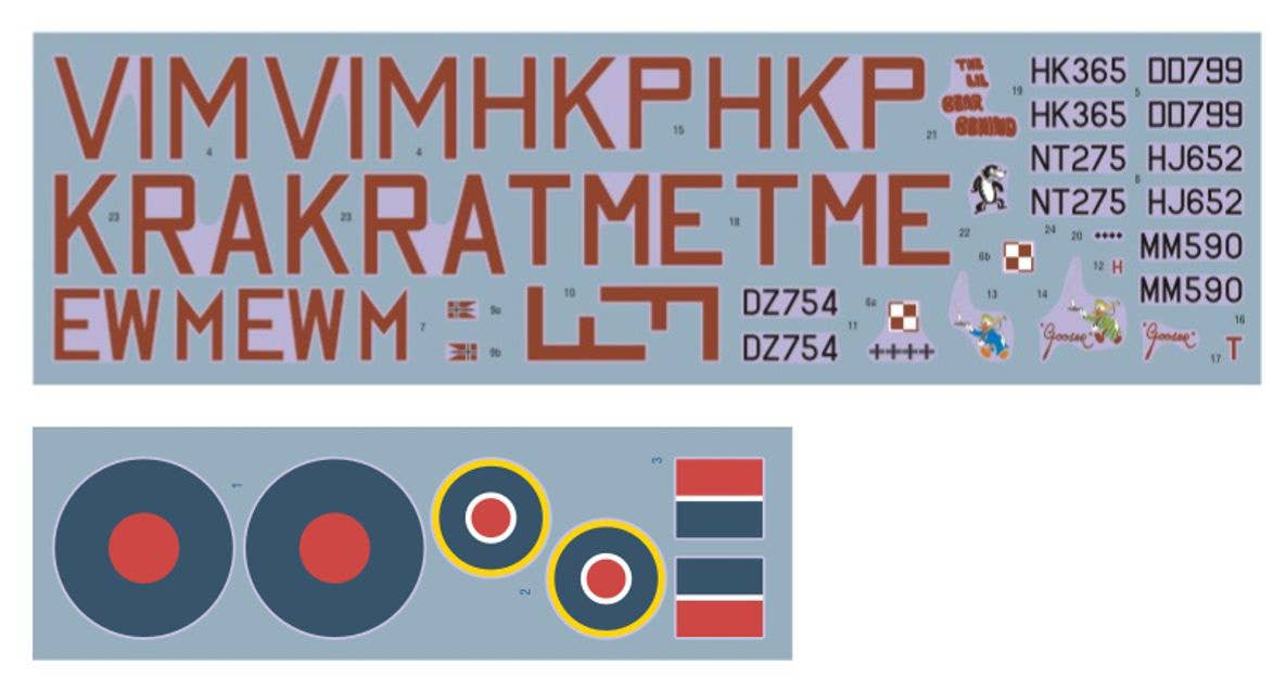 This is a sheet of water-slide or dry transfer decals for marking aircraft models.