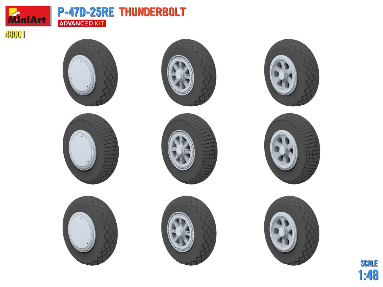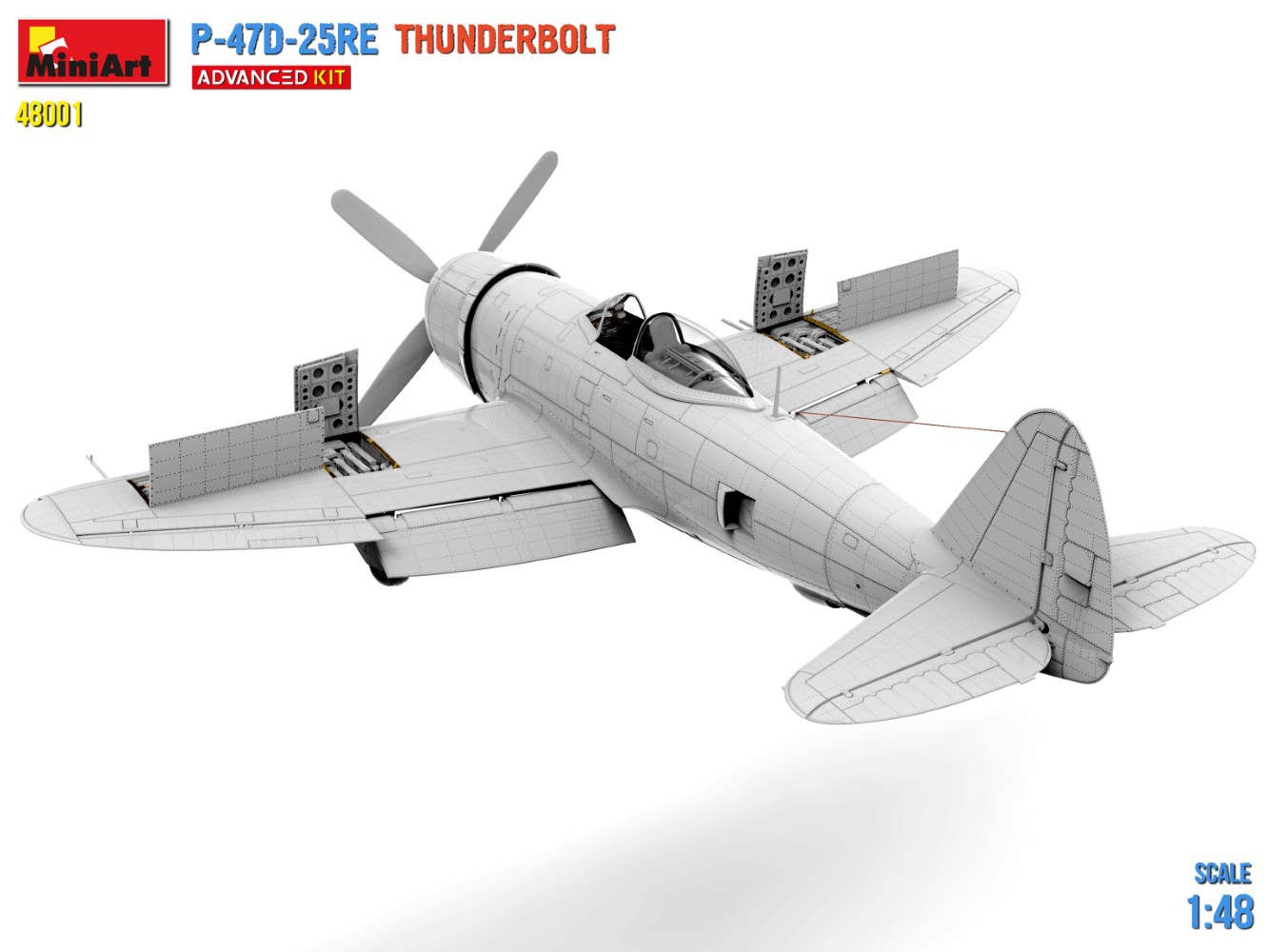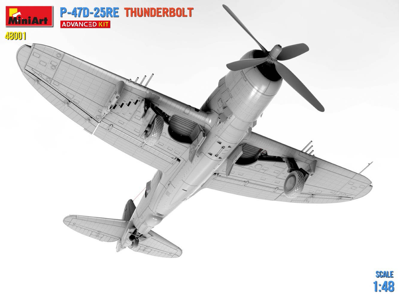 This 1/48-scale model kit of the P-47D-25RE Thunderbolt features a hatch that can be built opened or closed; three types of wheels are included, and the internal structure of the engine, etc., are accurately depicted. Clear parts and photo-etched parts are included, as well as decals for three versions. Place your order today!