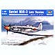 Here's a nice new-tool MiG-3 kit from Trumpeter. Surface detailing does a good job of showing the differences between the metal and wood sections of the original. The three-gun cowl is nicely reproduced. Interior detailing is superb, with beautifully done cockpit and landing gear. Underwing rockets are included. Markings are given for three aircraft: "12" and "95" in summer camouflage, and a winter camouflaged "7" with large black arrows on the sides and a patriotic slogan under the cockpit.
