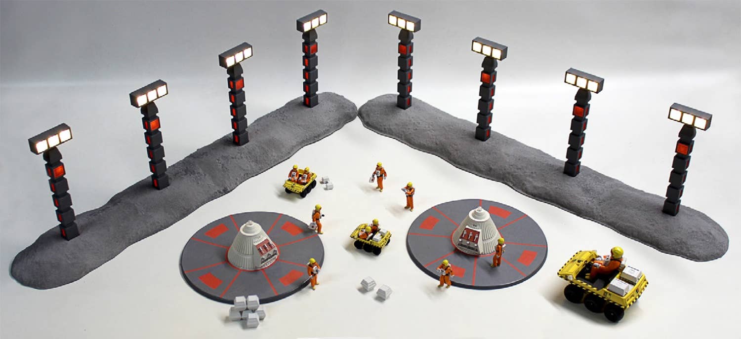 In "Space: 1999," human exploration left its mark when Moonbase Alpha was constructed on the desolate surface of the moon. Its staff of technicians and scientists were charged with monitoring stores of nuclear waste housed in underground silos on the dark side of the moon. Among the various waste fields, Waste Area 2 was distinctive with its cross-shaped layout. The area was illuminated by lamps mounted along the laser fence that defined its periphery. Alphan personnel, transported by six-wheeled moon buggies, inspected the field's cone-shaped control units.