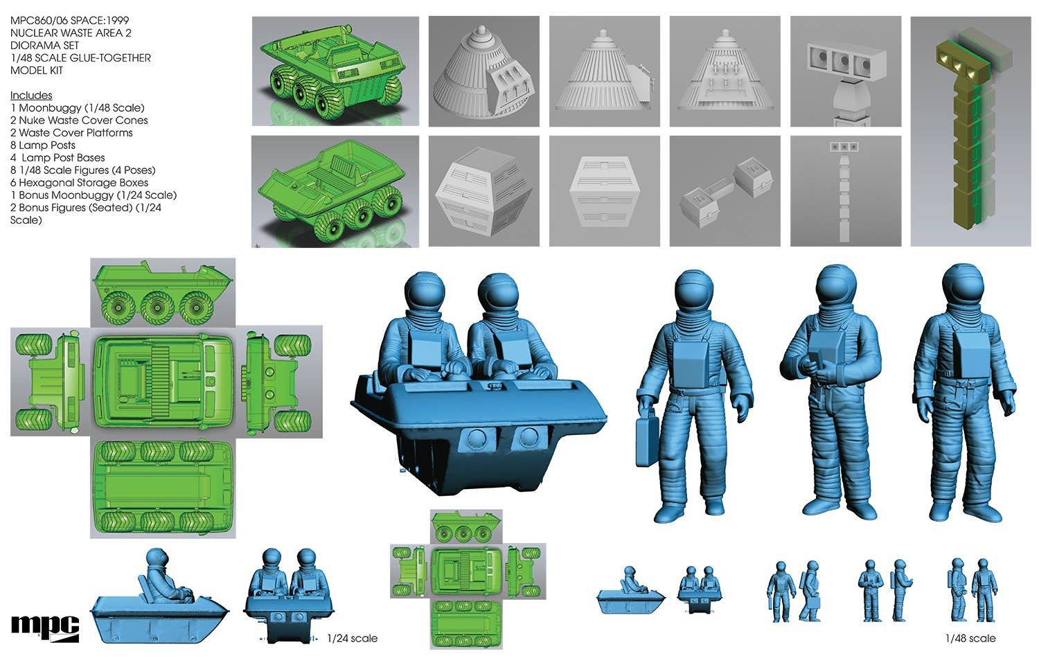 This kit from MPC highlights Nuclear Waste Area 2 with a set of models authentically based on the miniatures and vehicles used in the television adventure. It is compatible with the 22" Eagle Transporter model kit. Multiple sets can be combined to create a larger display of the area.