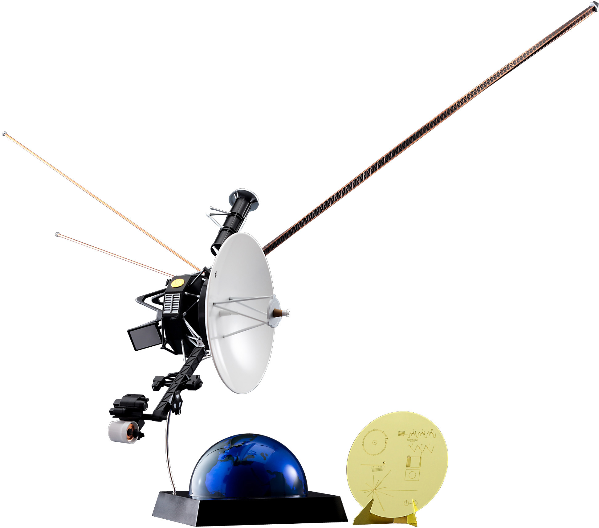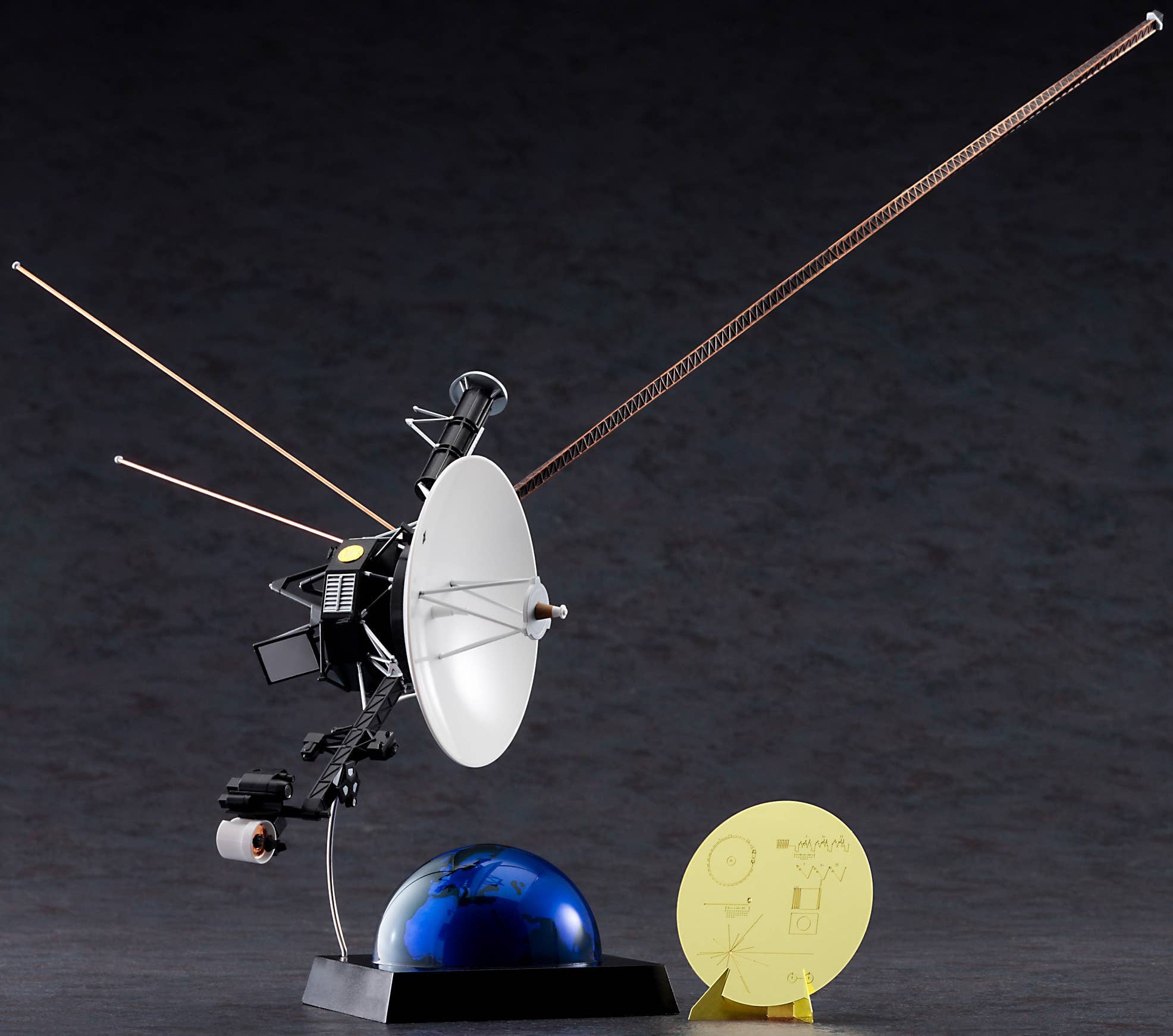 This snap-together kit includes 3 different-scale reproductions of the Golden Record -- 1/6, 1/12 and 1/48 -- as photo-etched metal parts. A figure of a small alien is also included, with another Golden Record in scale to it! A dome base for display is also included, resembling Earth.