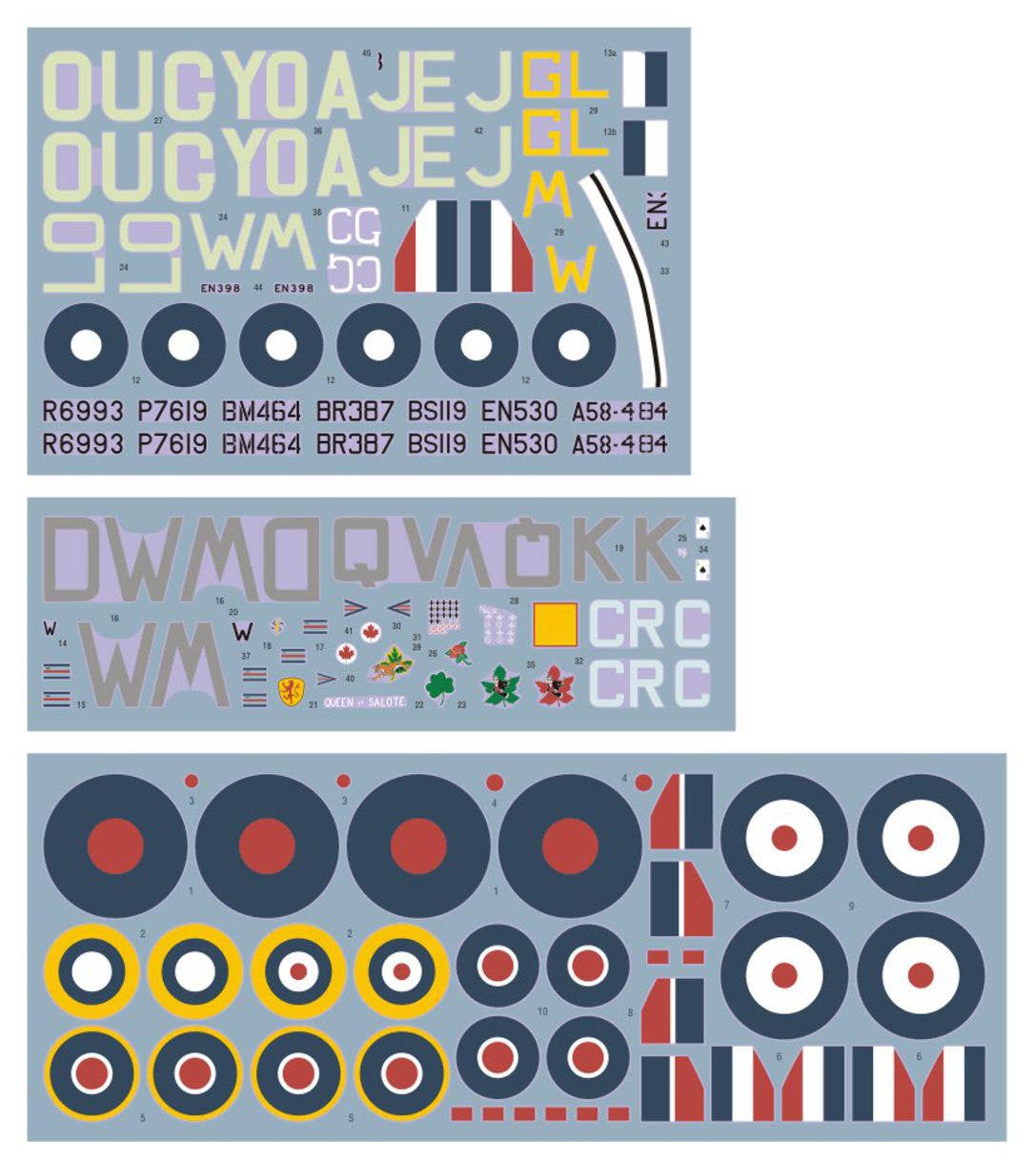 This is a sheet of water-slide or dry transfer decals for marking aircraft models.