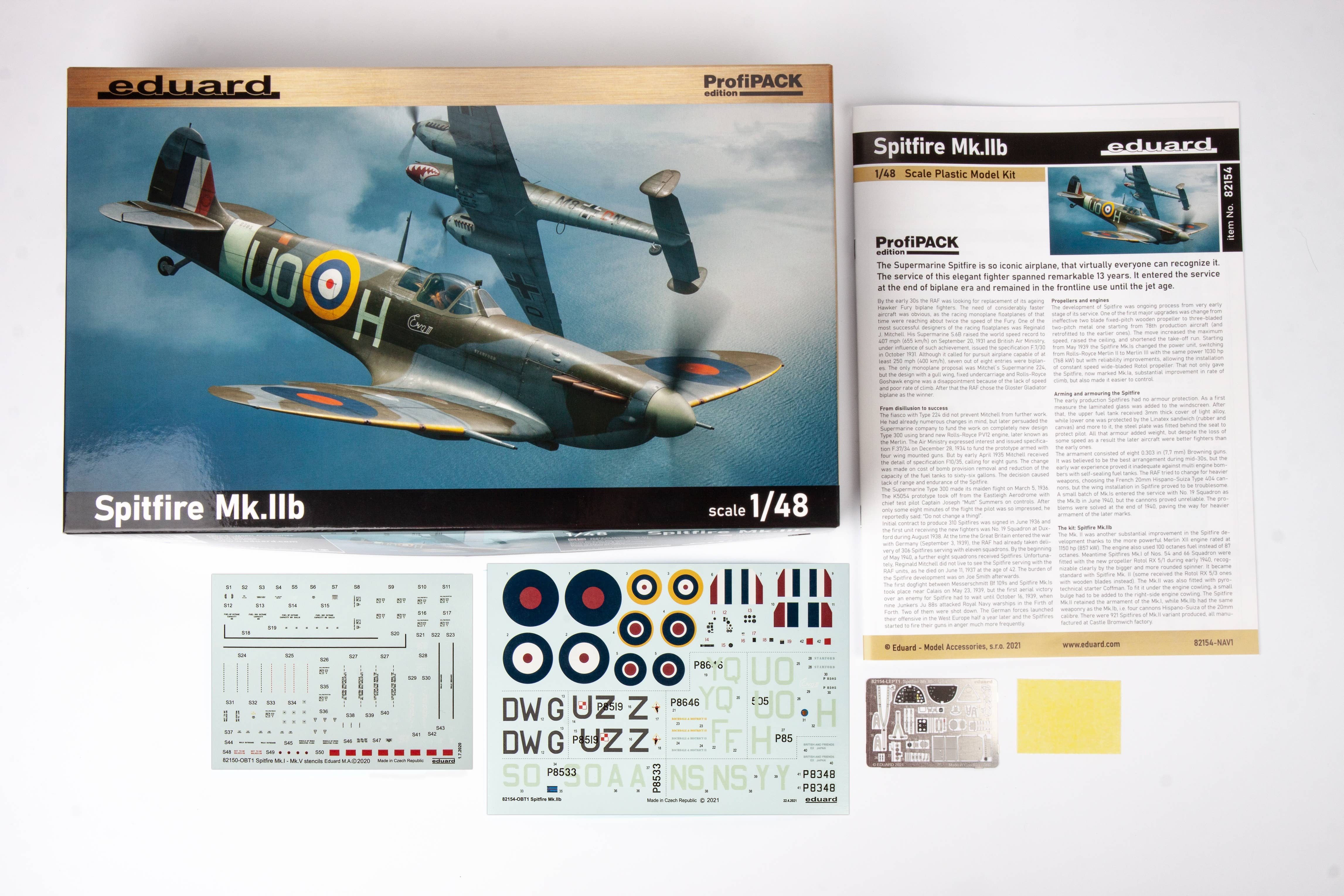 Eduard's "Profipack" model kit of the Spitfire Mk.IIb includes photo-etched parts, painting mask seals, and decals for six Royal Air Force versions. Place your order today!