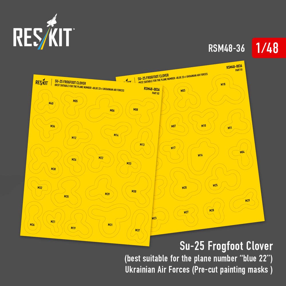 1/48 Su-25 Frogfoot Clover (best suitable for the plane number blue 22) Ukrainian Air Forces (Pre-cut painting masks)
