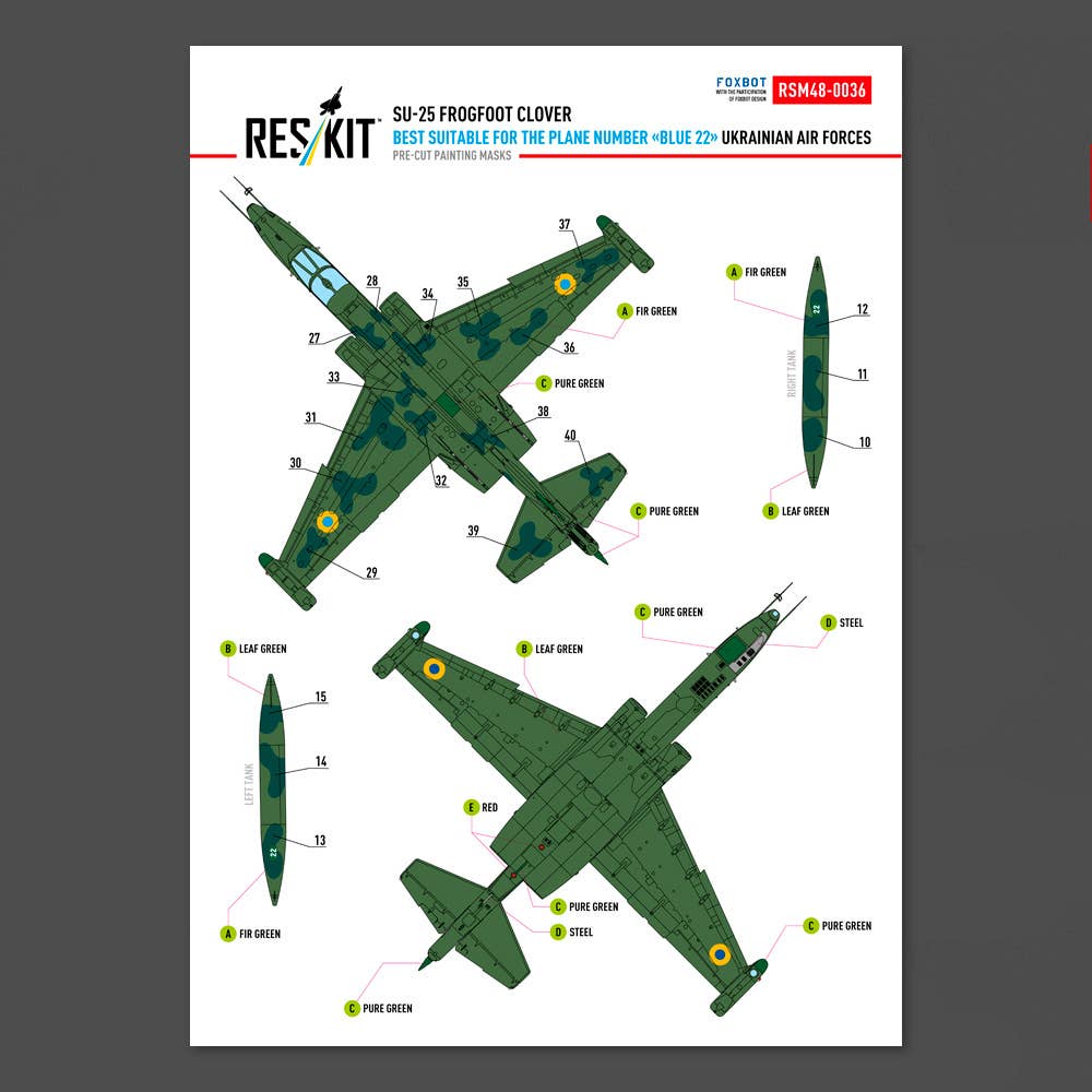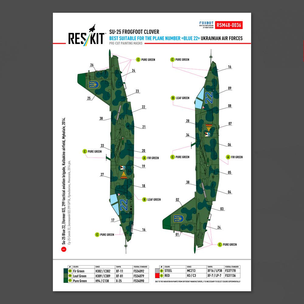 Su-25 Frogfoot Clover (best suitable for the plane number blue 22) Ukrainian Air Forces (Pre-cut painting masks)